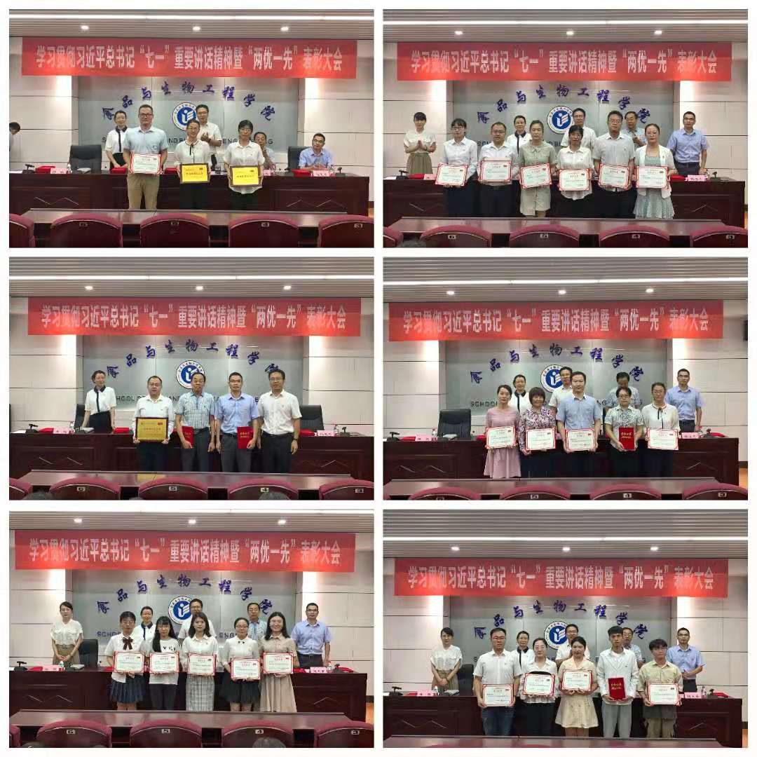 7月15日下午,食品与生物工程学院在学院学术报告厅召开学习贯彻习近平总书记“七一”重要讲话精神暨“两优一先”表彰大会,学习了习近平总书记重要讲话精神及学校表彰大会有关精神,表彰了荣获校、院先进基层党支部、优秀共产党员、优秀党务工作者等典型,激励了学院师生坚定信心,立足岗位,谋划学院发展。公司党委委员、班子成员、全体教师党员、员工党员代表参加大会,公司党委副书记孙敏主持大会。
