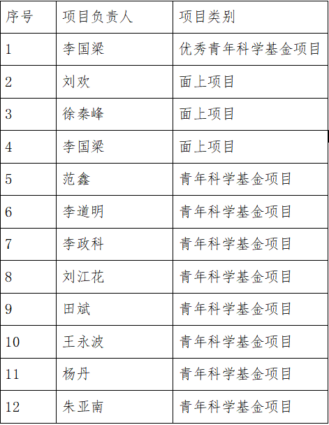 近日国家自然科学基金委公布了2020年度国家自然科学基金申请项目评审结果。2020年公司申报国家自然科学基金共计48项,最终获批12项,获批率为25%,资助数量位列全校第二,项目申请数和立项数均创新高。其中,优青项目1项,面上项目3项,青年项目8项,获资助直接经费496万元;其中,李国梁教授获优青项目资助,实现学校优青项目突破。