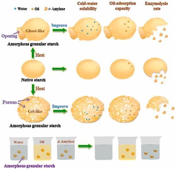 图为研究成果“无定形颗粒状淀粉”特性示意图